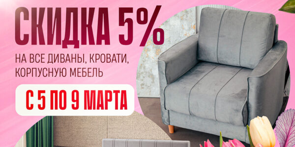 Весна - время обновлений! С 5 по 9 марта в «Ами Мебель» дополнительная скидка 5% на все диваны, кровати и…