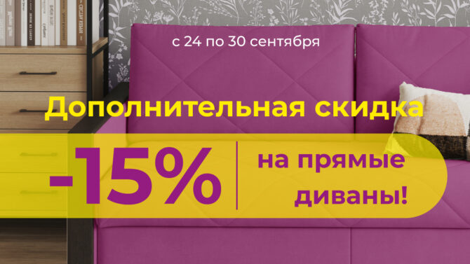 Дополнительная скидка 15% на прямые модели в салоне «Цвет диванов» актуальна до конца сентября! Классные…