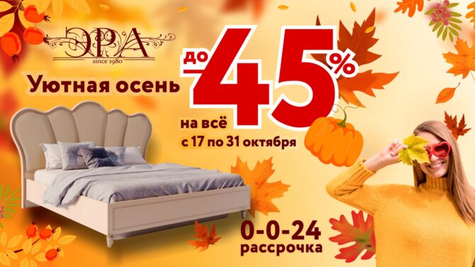 Уютная осень с «Эрой» - это скидки на всю мебель до 45%. Акционные цены актуальны…