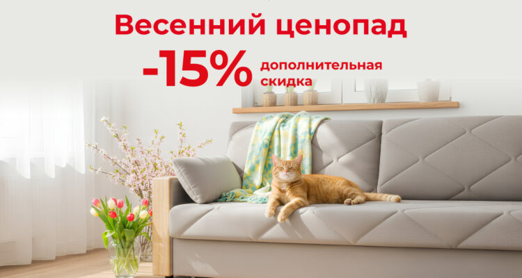 С 1 по 31 марта в салоне «Цвет диванов» акция «Весенний ценопад»: дополнительная скидка –15%…