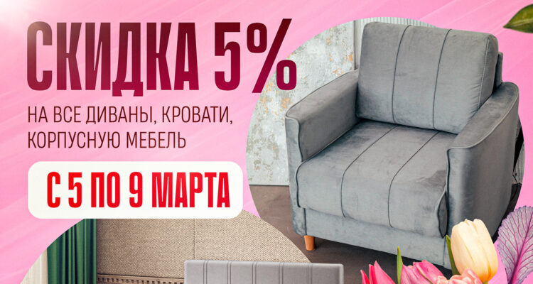 Весна - время обновлений! С 5 по 9 марта в «Ами Мебель» дополнительная скидка 5%…