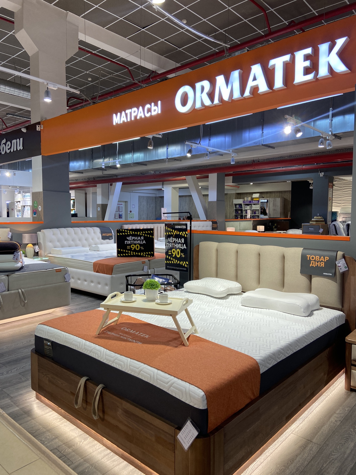Исполнения месяца: –15% на кровати и мебель ORMATEK в оттенках Manhattan, –20% на модели Verda в тех же цветах (скидки суммируются — до 45%)