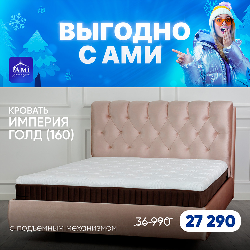 16.01.2026 Новости Мебельного центра В Ами Мебель новая акция. С 16 по 31 января скидки на кровати, мягкую и корпусную мебель до 40%. Скидка на все матрасы 20%. Подробности у консультанта в салоне на втором этаже. Поделиться
