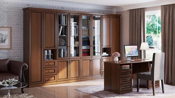 Мебель в стиле классика из коллекции Верди прекрасно подойдет для библиотеки или кабинета.
