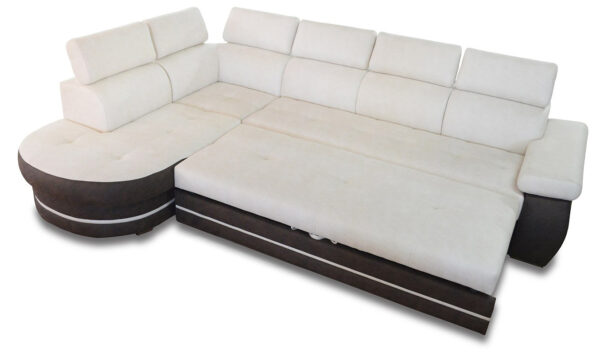 В стилистике дивана «Айпетри» доминируют простые формы. Комфорт отдыха гарантируют мягкие подушки спинки и подлокотников, удобное, широкое сидение. Роскошные широкие подлокотники обладают дополнительной функцией. В каждом из них находится вместительная ламинированная ниша для белья. Механизм трансформации позволяет, без особых усилий, разложить диван в просторное и ровное спальное место.