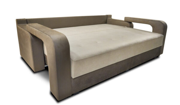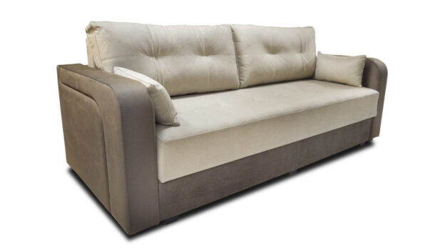 Независимый пружинный блок в основании дивана сделает ваш сон спокойным и комфортным, а выезжающий подлокотник-трансформер удобно зафиксирует подушку, не позволяя ей скатываться во время вашего сна. Стандартные размеры дивана 232×103 см. Спальное место 200×158 см. Диван может быть доукомплектован креслом для отдыха или креслом — кроватью по вашему желанию.