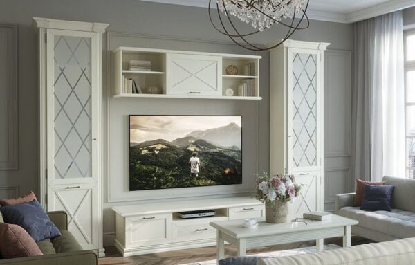 Гостиная Кантри прекрасно подойдет для помещений, оформленных в стилях кантри, прованс и классика. Сочетание древесных элементов придаст комнате уют и комфорт.