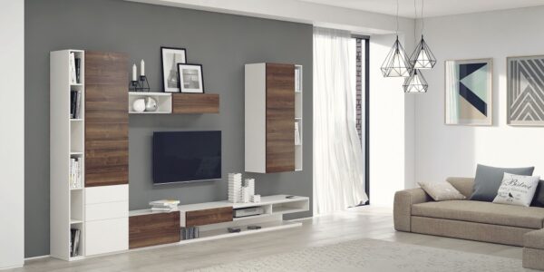 Цвет мебели бьянко, цвет фасадов бьянко и орех американский.