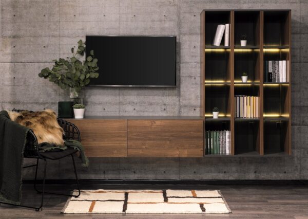 Цвет мебели — графит и орех американский, цвет фасадов — графит.