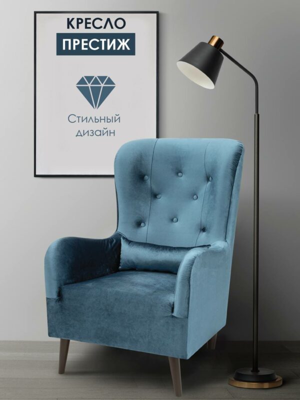 Кресло с высокой мягкой спинкой будет идеально смотреться как отдельный элемент мебели, так и с диваном. Наполнение мягких частей ― ППУ. В комплекте маленькая подушка, которая обеспечивает удобную поддержку поясничной области и в кресле сидеть становится еще удобнее.