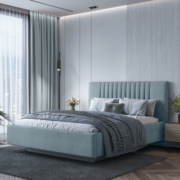 - Дизайн с вертикальными линиями изголовья, разбавят монотонность интерьера.