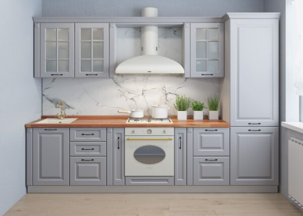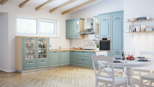Рамочные фасады, утонченные изгибы розеток и арок, навесные шкафчики с раскладкой погружают нас в мир французской культуры.