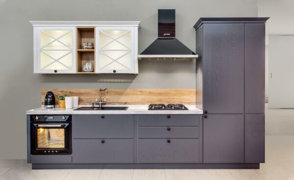 Фасады, изготовленные из МДФ и покрытые натуральным шпоном дуба и эмалью, имеют ярко выраженную текстуру благодаря специальной технологии производства. Новейшие системы хранения делают кухню очень комфортной и функциональной в использовании.