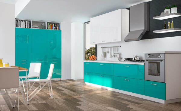 Лицевая сторона фасадов может быть окрашена глянцевой или матовой одноцветной эмалью.