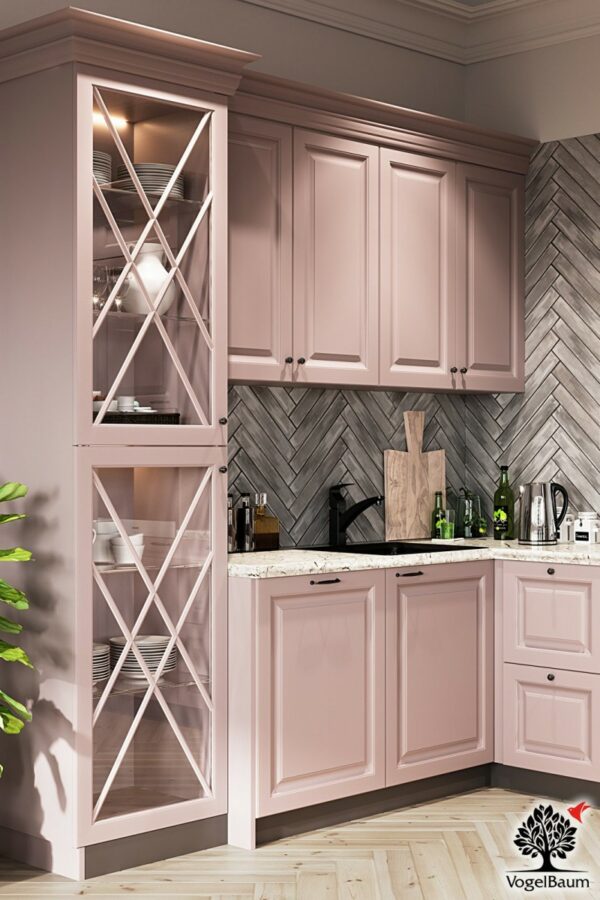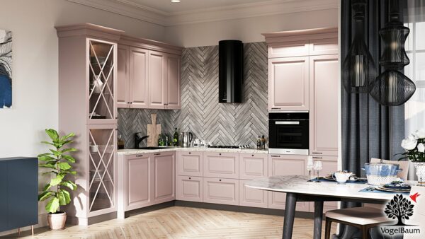Кухня ROZA — это неоклассика. Изящная, нежная, элегантная. Как застенчивая красавица, она предлагает Вам свою неброскую красоту и пленительный уют — предлагает полностью, без остатка. И, конечно, она очень практична, надежна и комфортна — как и положено каждой уважающей себя кухне VogelBaum.