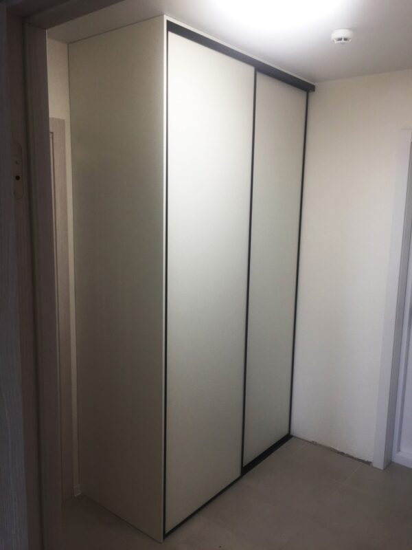 Небольшое, но практичное решение для небольших прихожих! Шкаф выполнен в современном минималистичном дизайне из ЛДСП и тонкого профиля от Modus.