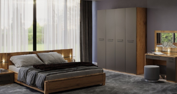В спальне Cubo максимально учтены все факторы, которые влияют на комфортный отдых и эргономику жилого пространства, это достигается благодаря светлым и древесным текстурам мебели.