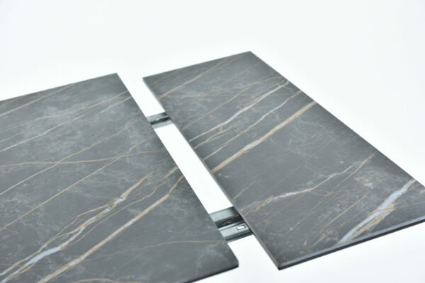 Столешница из тонкой керамики итальянского и испанского производства, отличается повышенной износостойкостью, устойчивостью к повреждениям, жаропрочная. Удобный механизм раскладки (лепестки).