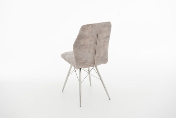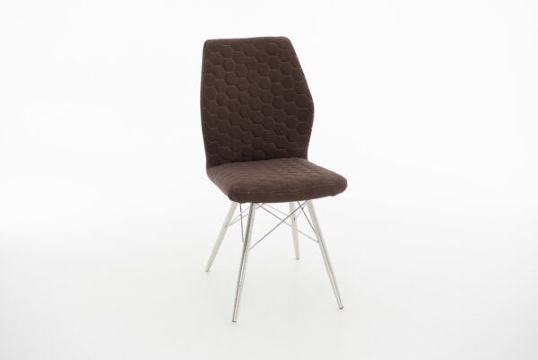 Стул «Шато» имеет более 50 вариантов обивки и 10 вариантов окраски каркаса. Поможет идеально обустроить обеденную зону в гостиной или уютный уголок для трапез на кухне. Модель не имеет подлокотников, но оборудована высокой спинкой для особого удобства сидящего. А тонкая строчка в виде ромбов на мягких элементах дарит образу элегантность.